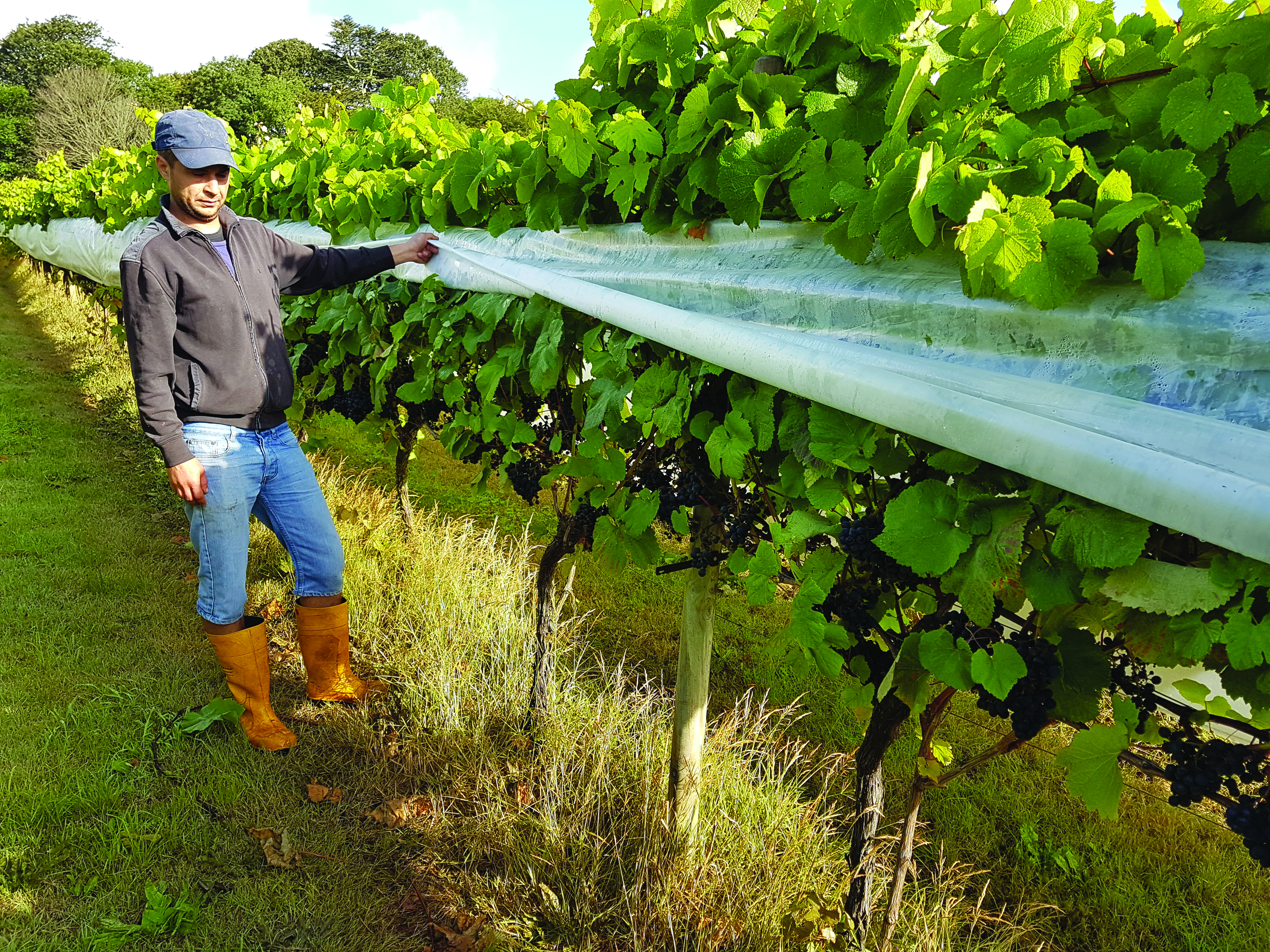 Peter Strauss of Capatex Ltd and I have been experimenting with vineyard cloches since 2013. Early prototypes connected plastic film to monofilament wires using plastic clips, and covered the fruit zone primarily; more recently the film width has been increased to cover most leaves, and has been modified to be easy to install and drop down. For the moment cloche use is limited in the UK, but they may be considered a new tool to increase vineyard profitability.