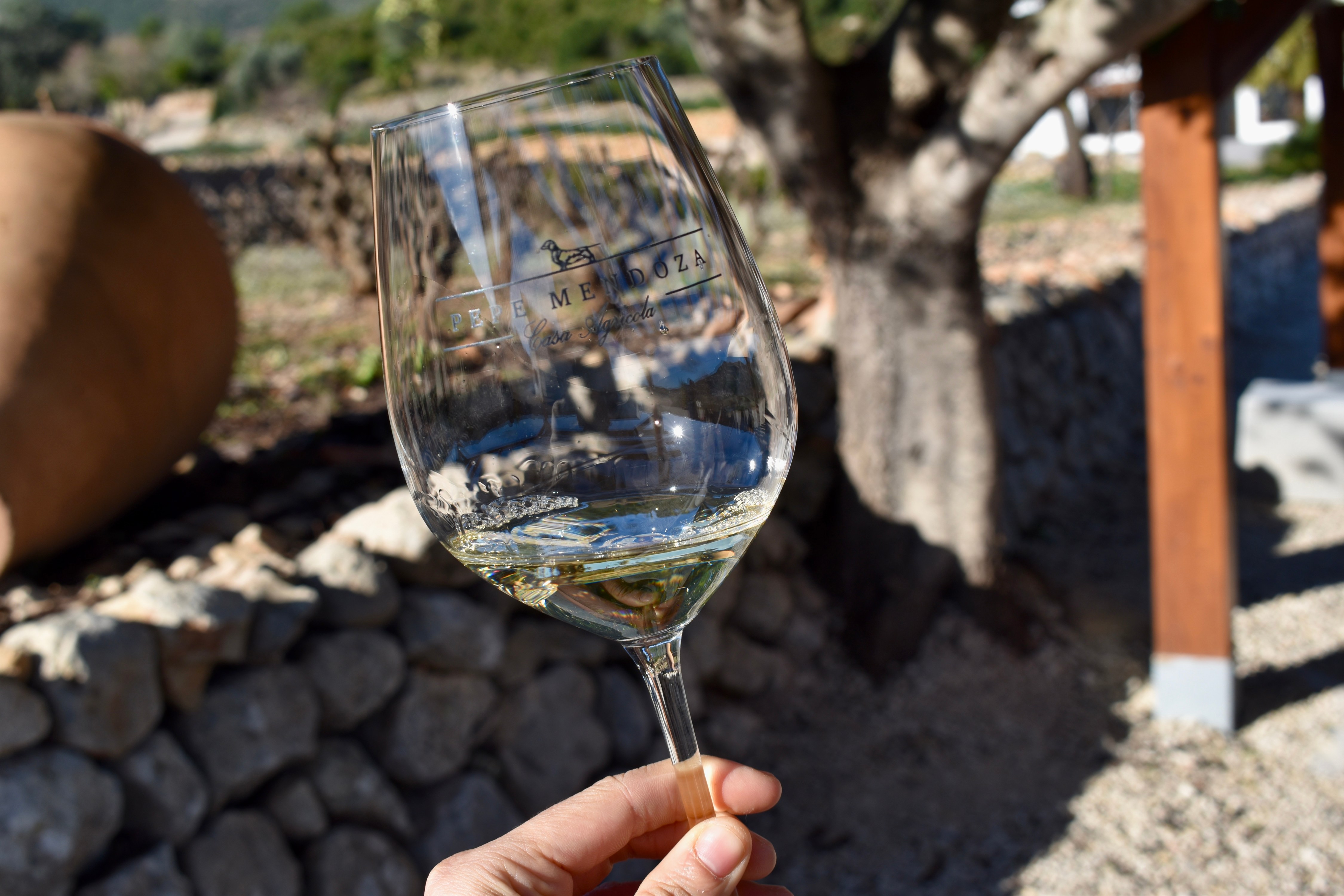 It came as little surprise that, on my second visit – this time to the Pepe Mendoza vineyard, both international and local visitors explored local wine styles with increasing confidence, often setting aside familiar names in favour of regional expressions. During a tasting, one of the guides observed that many visitors arrive already engaged with the winery’s production methods, indigenous grape varieties, and terroir. This interest aligns closely with the philosophy of Casa Agrícola, Pepe Mendoza’s winery, which is grounded in respect for tradition, environmental care, and the Mediterranean character of Alicante wines. The vineyards are dry-farmed, organically managed, and frequently planted on ancient terraced plots with dry-stone walls, reflecting long-established agricultural practices. The focus remains on local grape varieties, particularly Monastrell, alongside Moscatel de Alexandria and Giró, with Syrah and Alicante Bouschet used selectively.